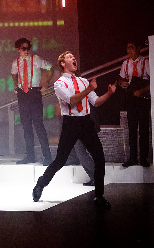 Drama Scholars are supported in a variety of ways. Scholars are invited to join theatre trips to the West End and beyond. In 2023-24, for example, Scholars saw Newsies at Wembley Park Theatre, Macbeth at The Globe and Guys and Dolls at The Bridge Theatre. Scholars are also invited to take part in theatre tours and workshops. In recent years, they have enjoyed interactive tours of the National Theatre and Shakespeare’s Globe. The boys were able to go on private behind the scenes tours to look at how design and technical elements contribute to a production and to learn about the history of performances at each venue.