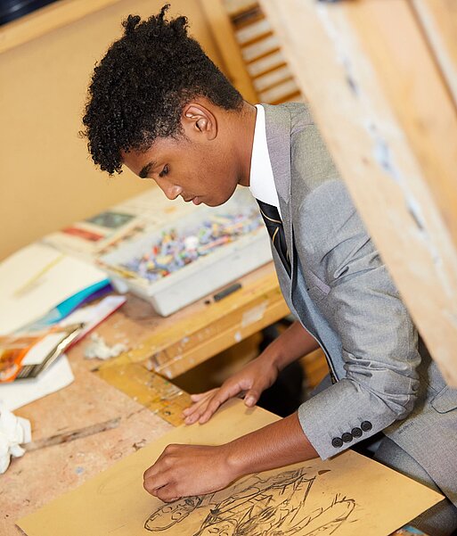 Our Scholars are expected to be exemplary ambassadors of art throughout the school community. They participate in 'The Art Café', our vibrant weekly art club. Each Scholar is provided with a comprehensive materials pack to support their artistic endeavours. Additionally, they have the privilege of attending exclusive outings and sessions. These are conducted not only by our dedicated Art teachers but also by esteemed external practitioners, offering a broad spectrum of artistic perspectives and experiences. This enriching programme is designed to foster a deeper appreciation and engagement with the arts.